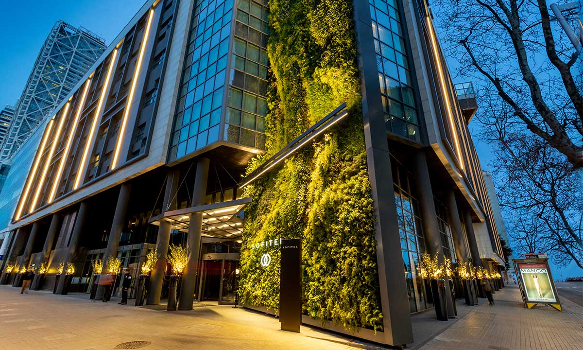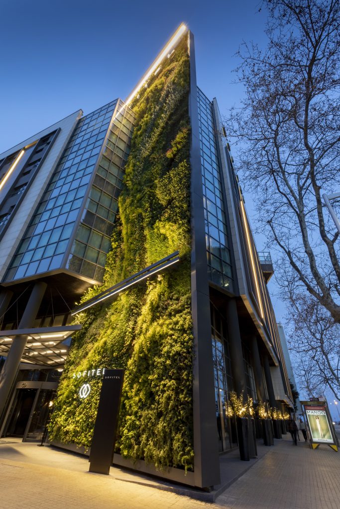 En el hotel Sofitel de Barcelona, ​​se ha instalado un jardín vertical de 32 metros de altura. Este jardín, está compuesto por más de 21 plantas de diferentes especies, que se han instalado mediante el sistema iPanel. El jardín cuenta con un sistema de riego inteligente que permite monitorizar el estado de las plantas y la humedad de las zonas, dotando de autonomía el jardín y evitando muchos costes de mantenimiento.
